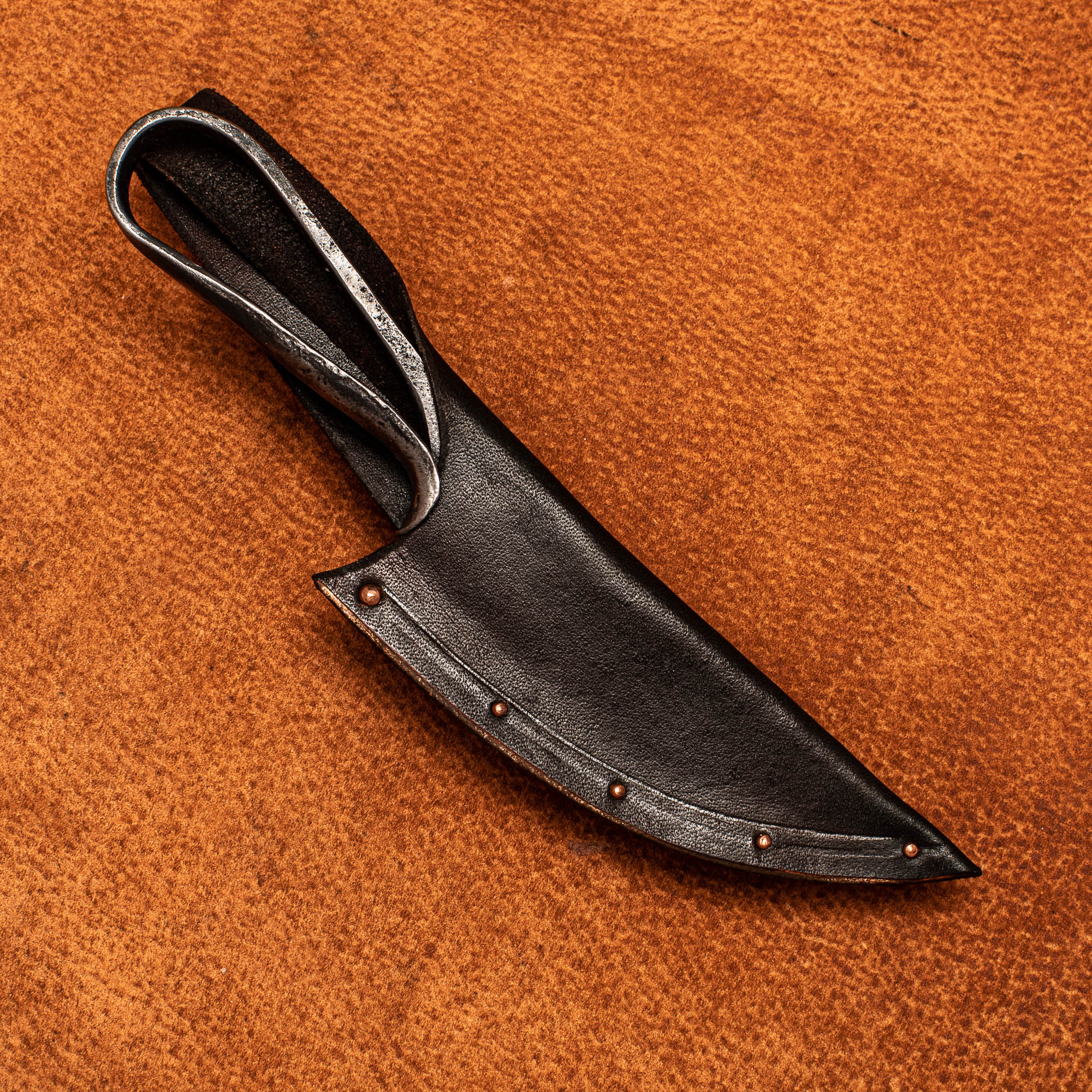 The knife and handle are forged from one piece of steel. I have forged these knives to feel good in the hand, rendering them a neat and useful little side knife as well a reliable using tool.