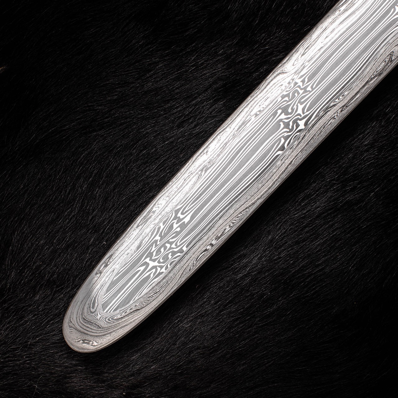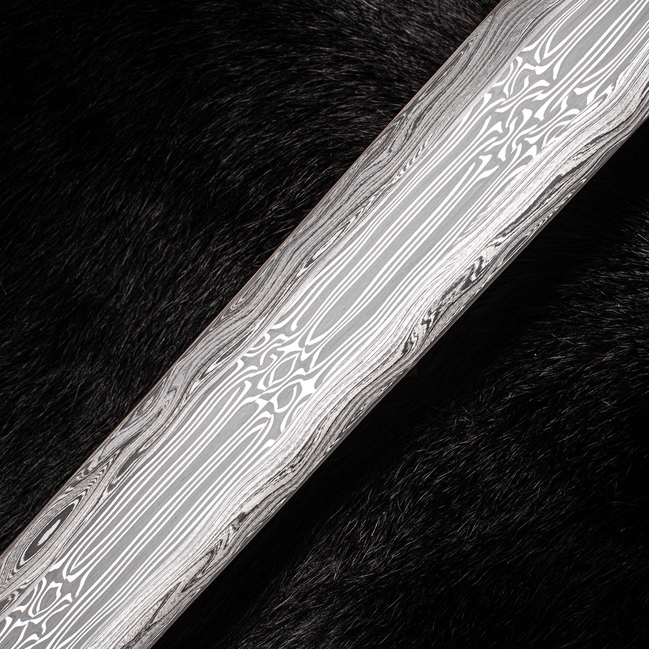 The blade is patternwelded The 3 core bars are twisted patternweld bars n twisted clockwise then anticlockwise and then clockwise again. The edge wrap is 500 layer random pattern damascus . This is a traditional method for constructing Viking and Saxon blades.